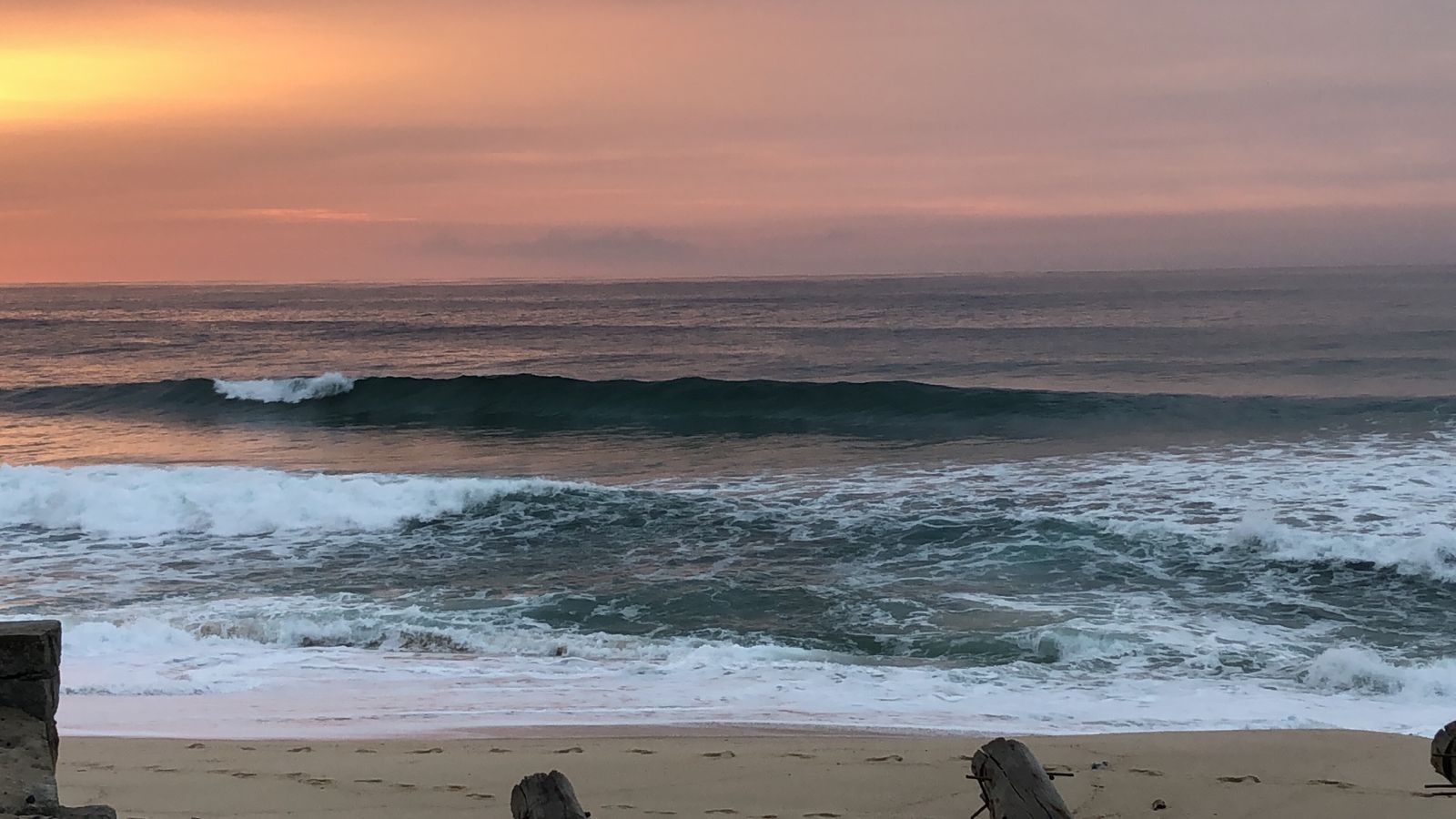 Ondas de 0,5 metro com algumas maiores, valendo uma brincadeira em alguns picos pela manhã.