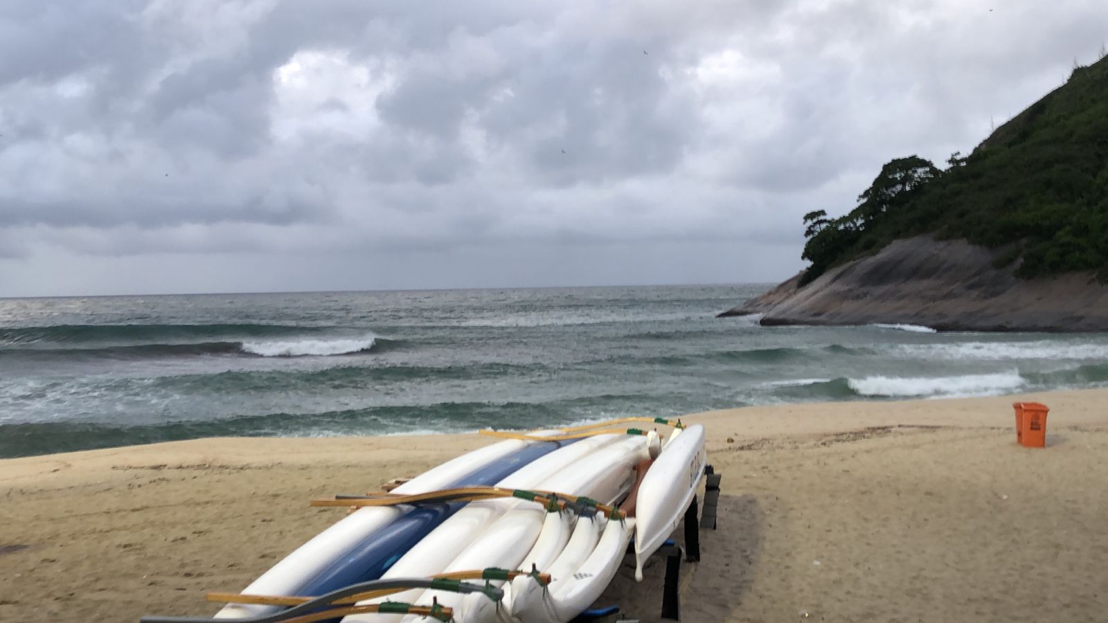 Mar subindo com vento sudoeste forte, deixando mexido na maioria dos picos. Ondas de 1,0 metro ganhando tamanho a tarde. Poucas opções como canto do Recreio e P11.