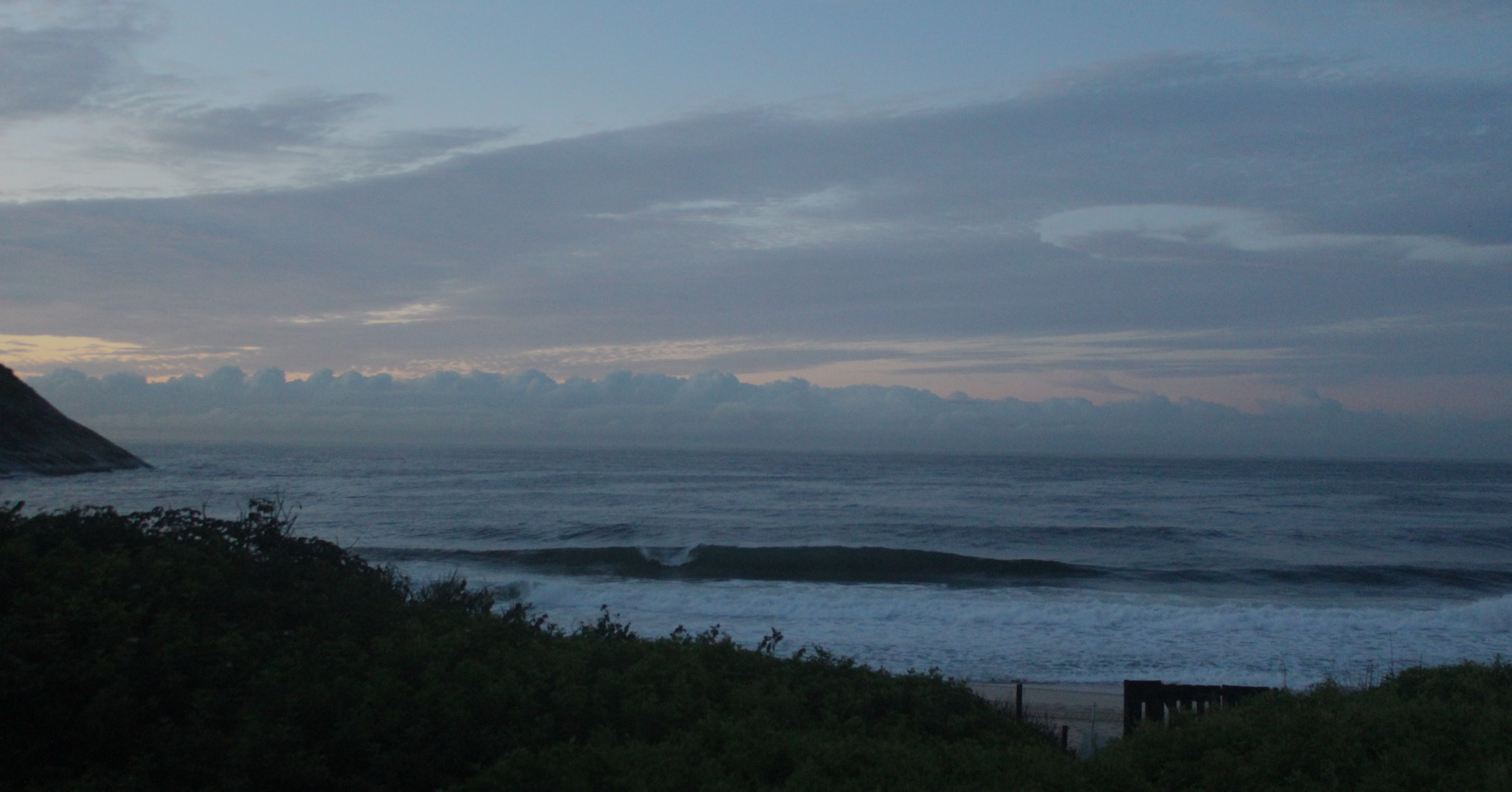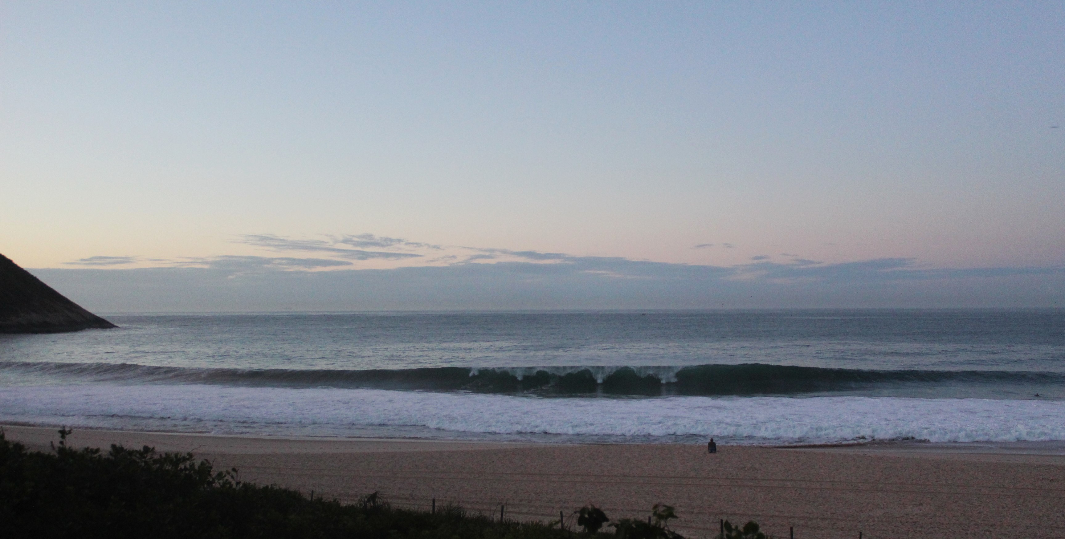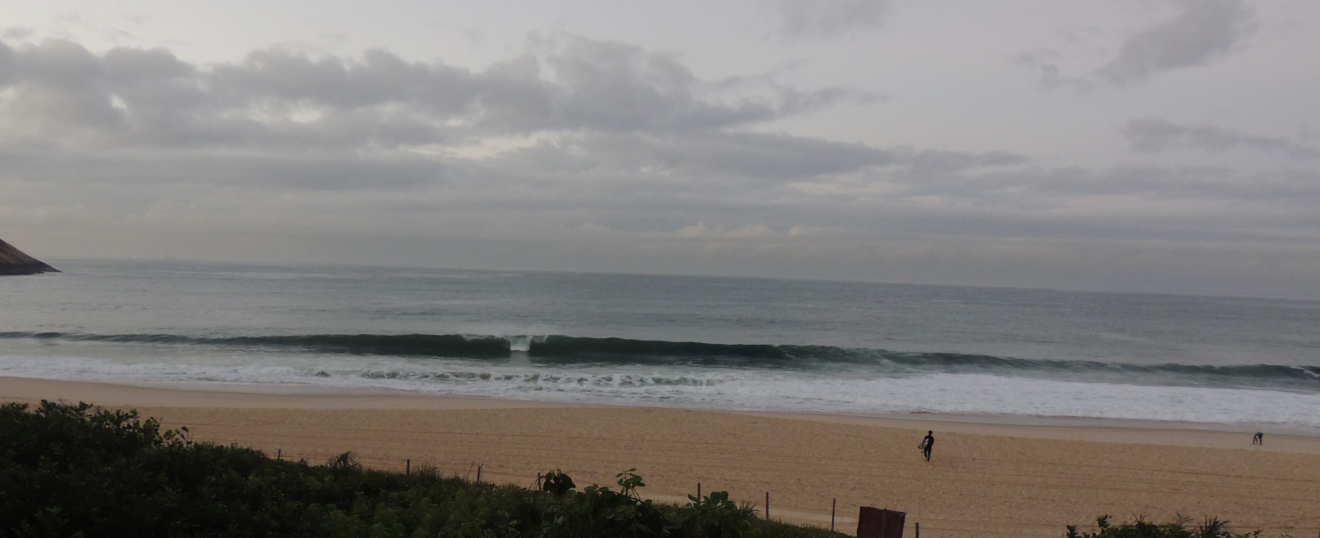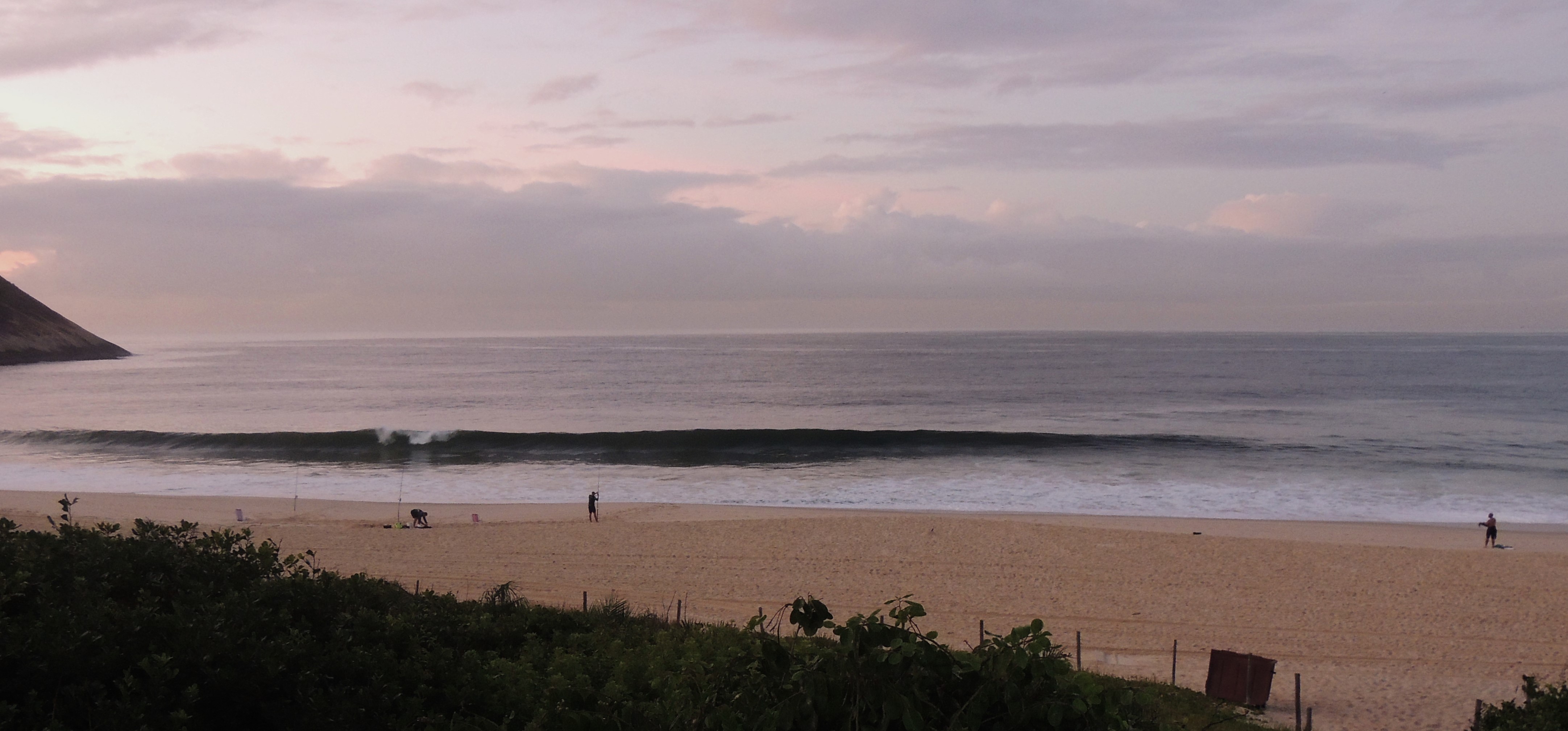 Ondas de 1,0 metro séries maiores, valendo a caída pela manhã com terral e previsão de vento sudoeste para o dia.