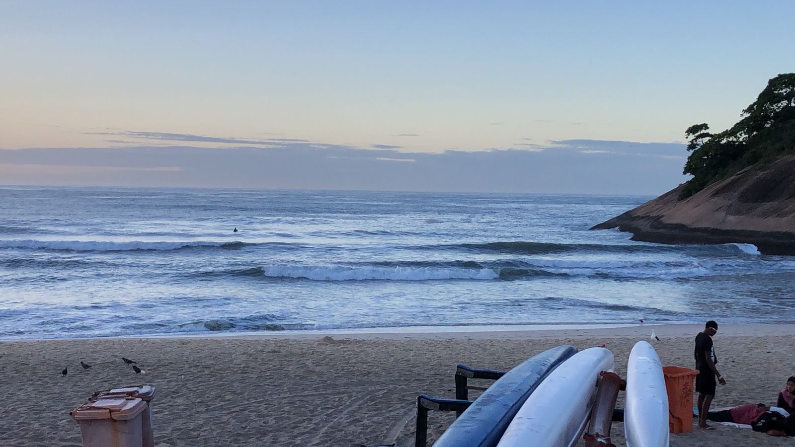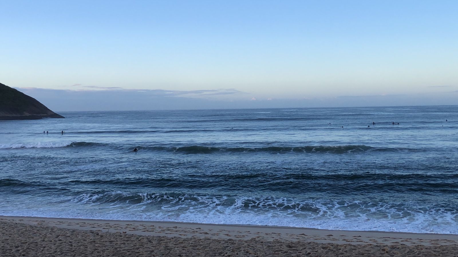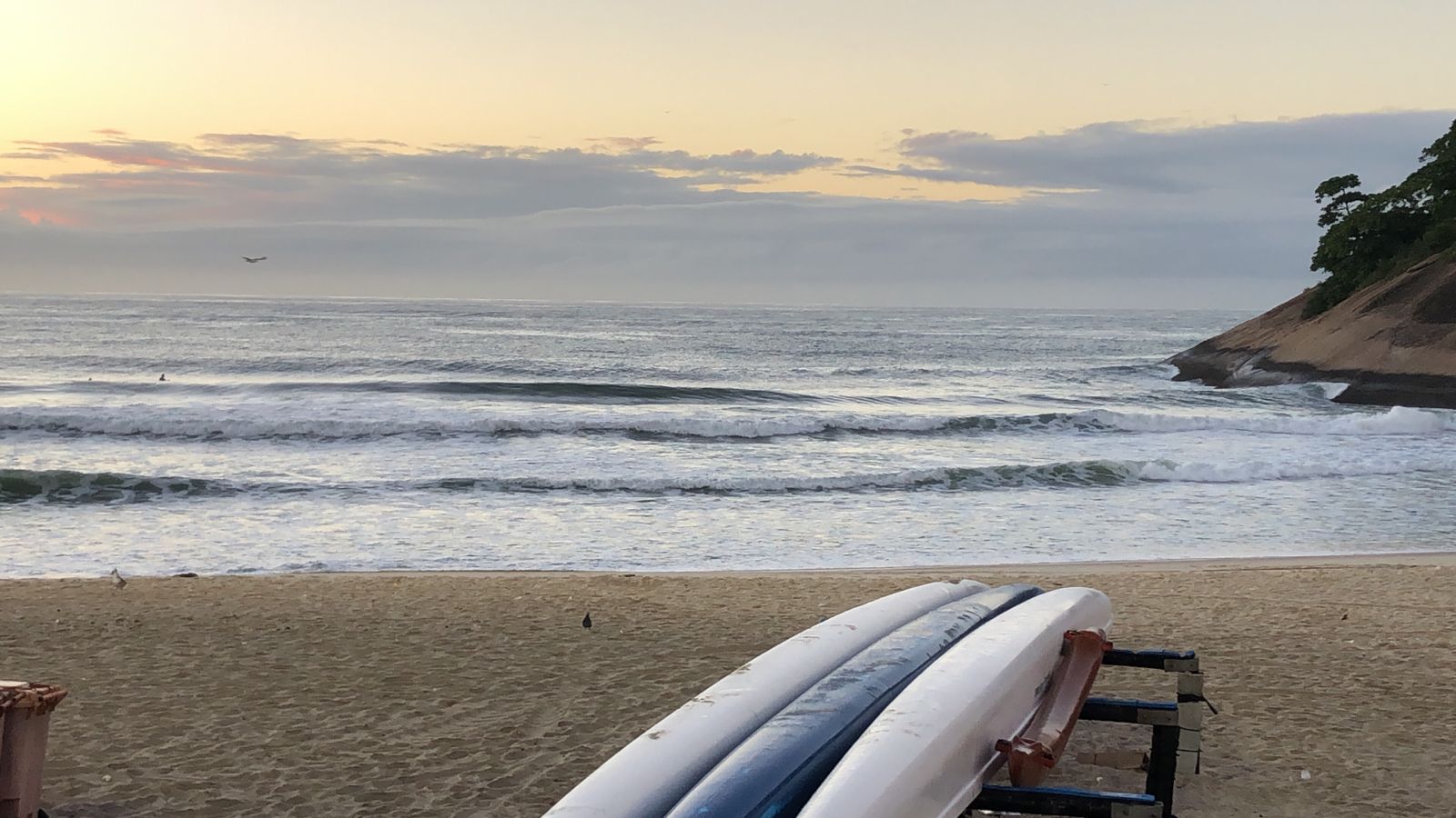 Ondas de 1,0 metro séries maiores, valendo a caída pela manhã com terral e previsão de vento sudoeste para o dia.