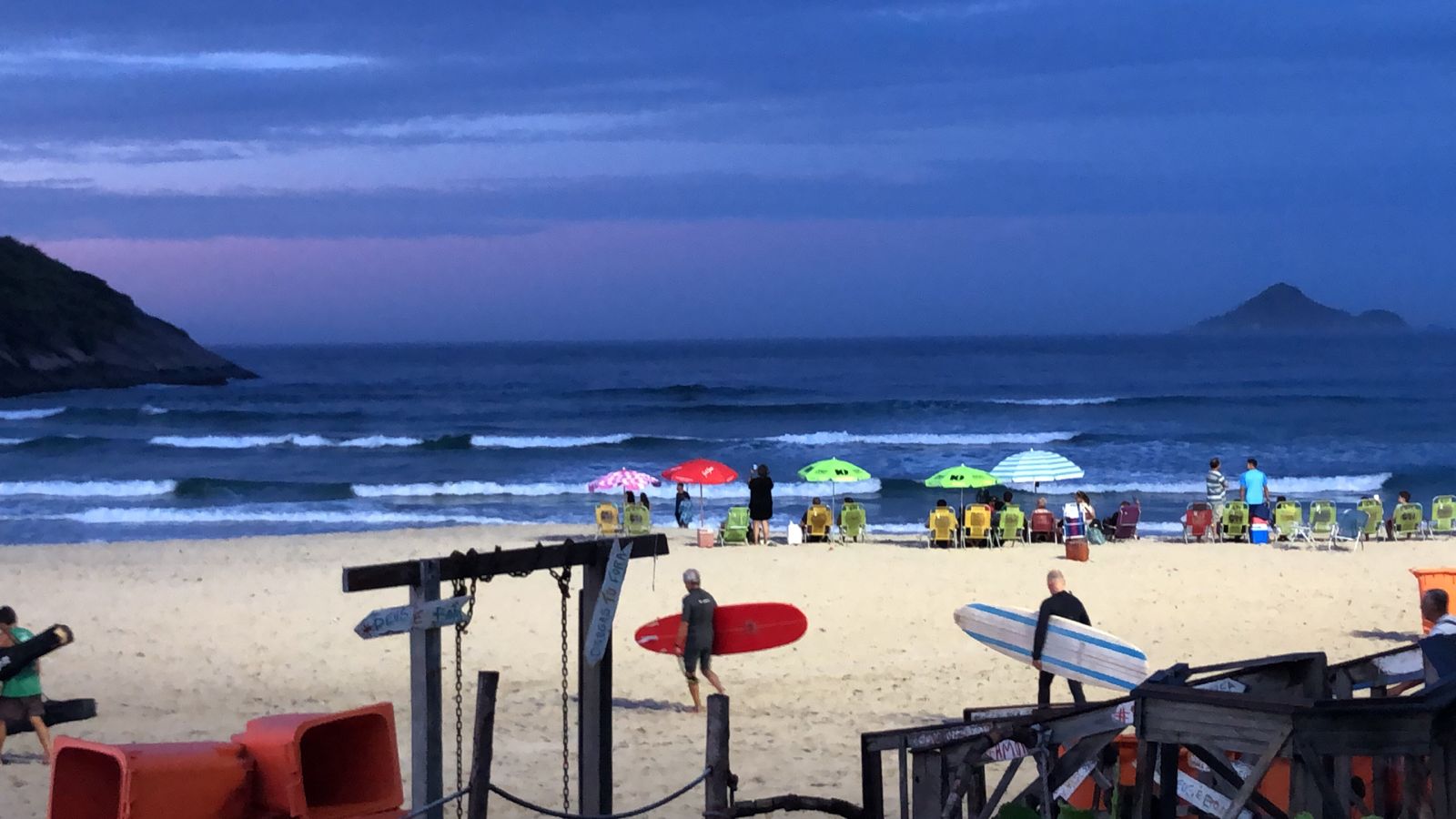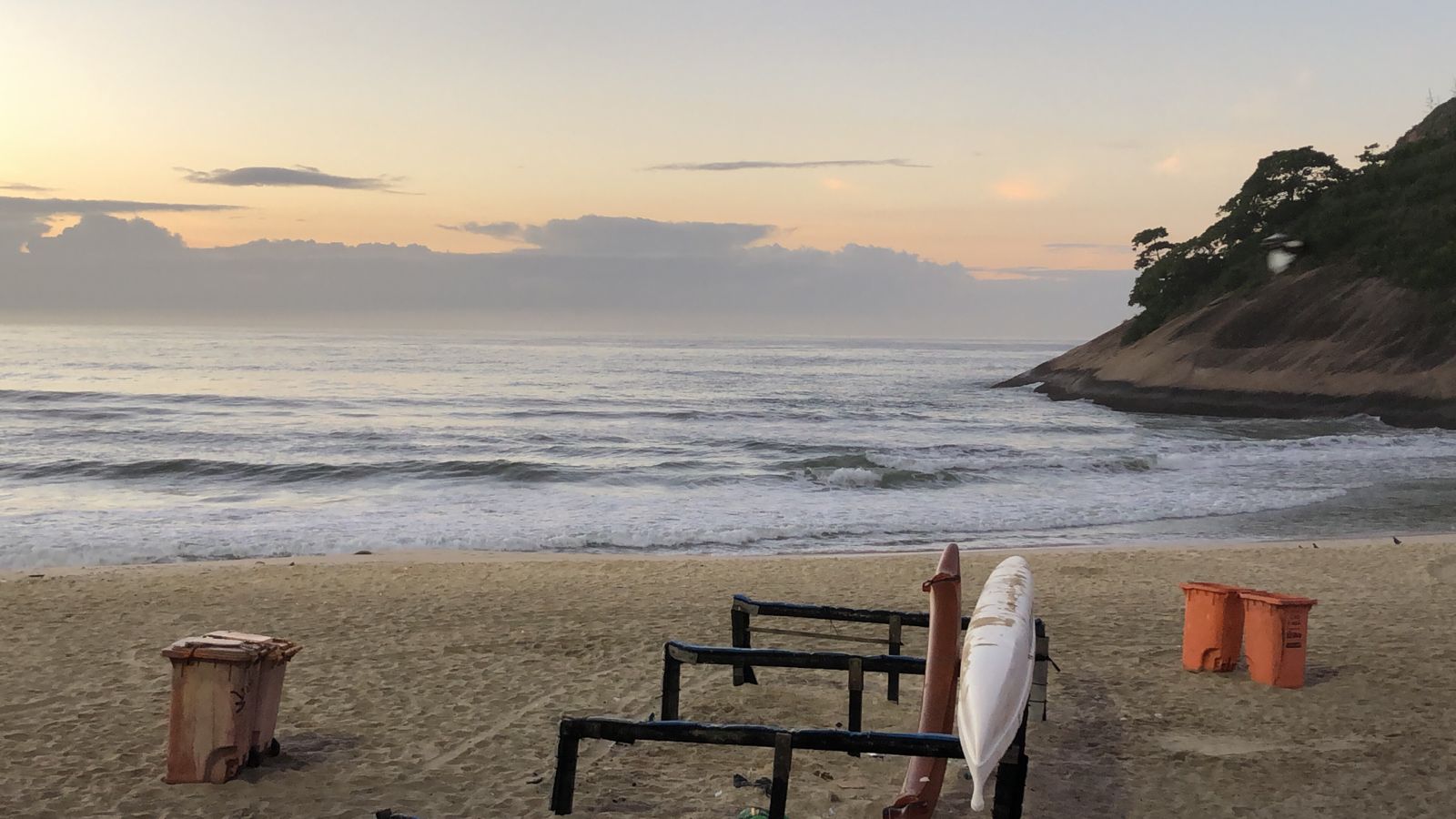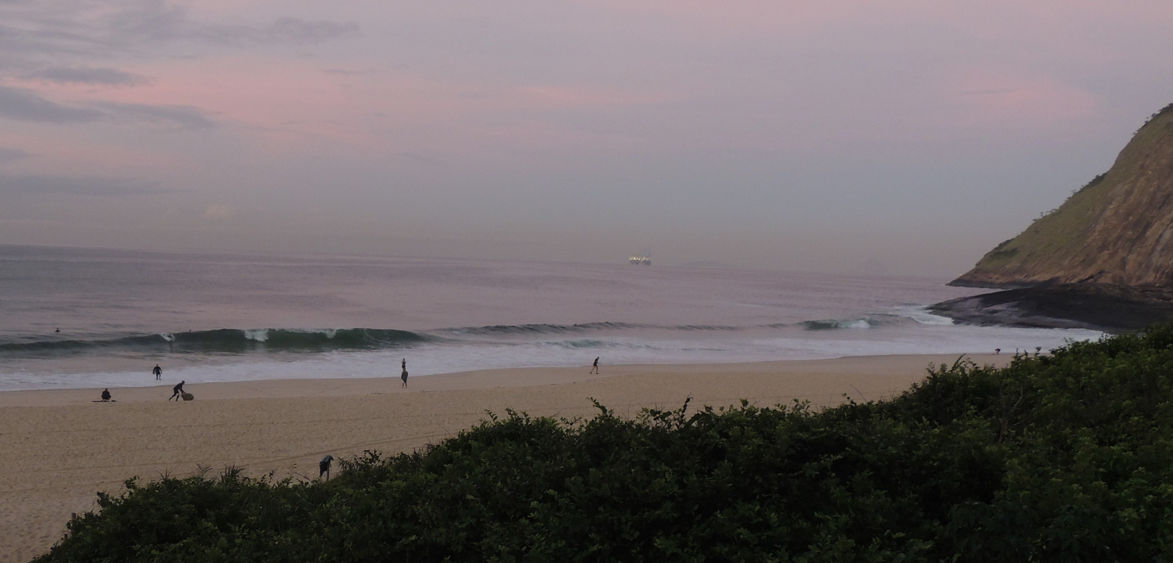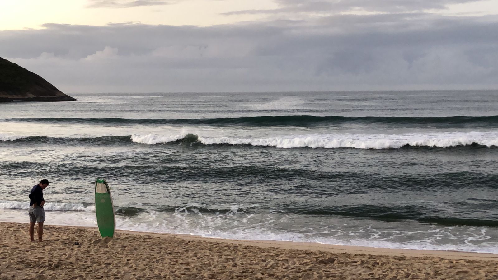 Ondas de 1,0 metro séries maiores, valendo a caída pela manhã com terral e previsão de vento sudoeste para o dia.