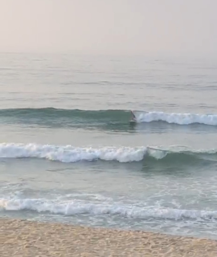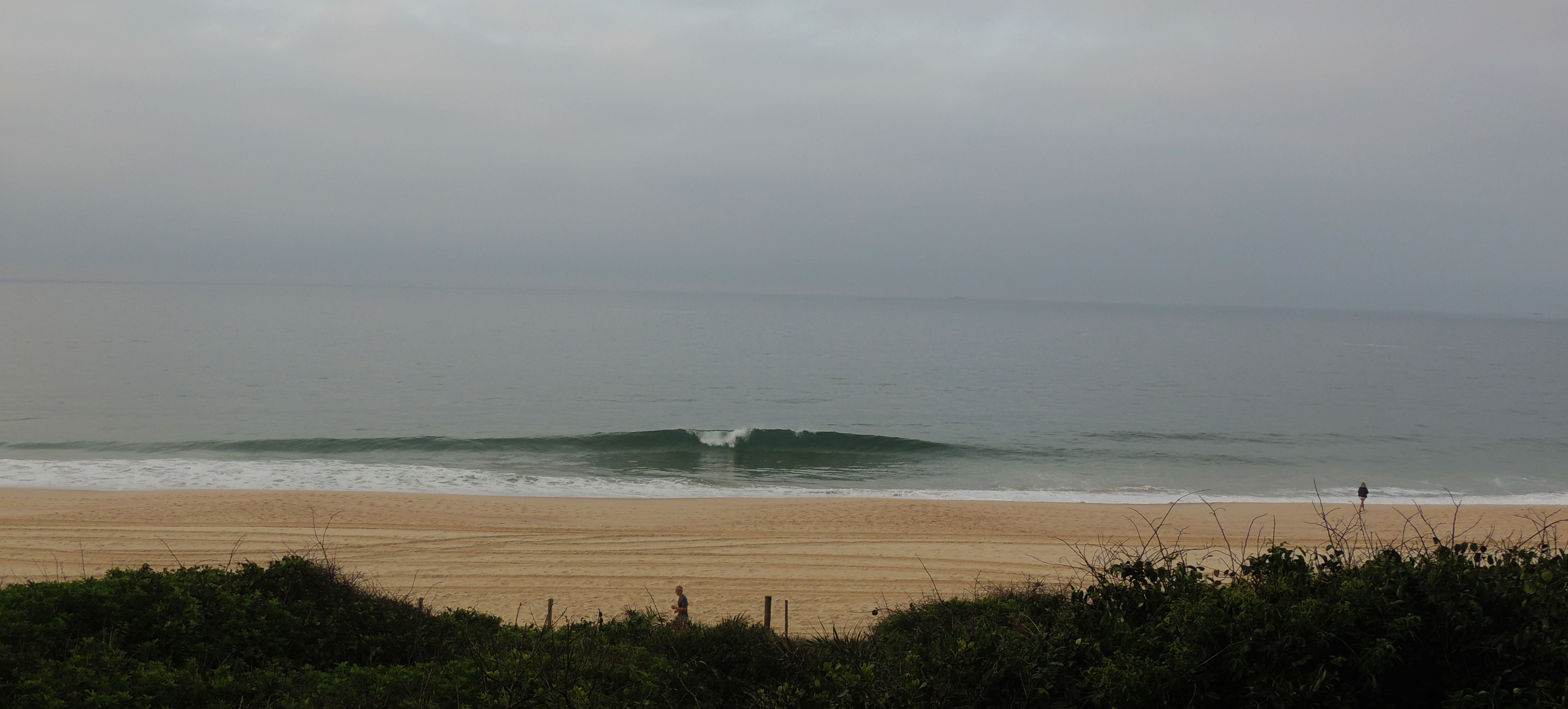 Ondas de 0,5 metro com séries maiores, valendo uma brincadeira pela manhã em alguns picos com previsão de vento leste forte a tarde.
