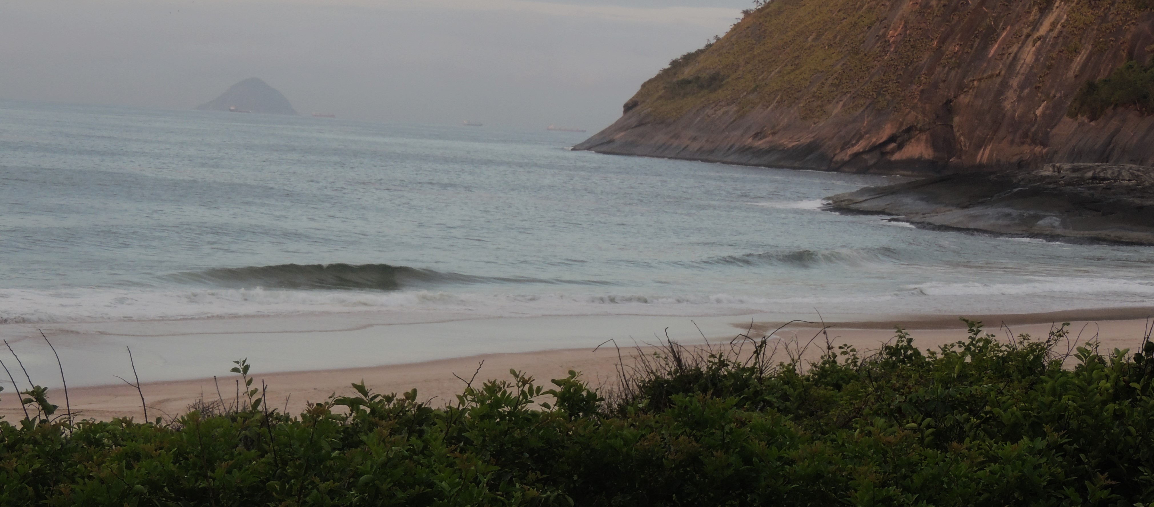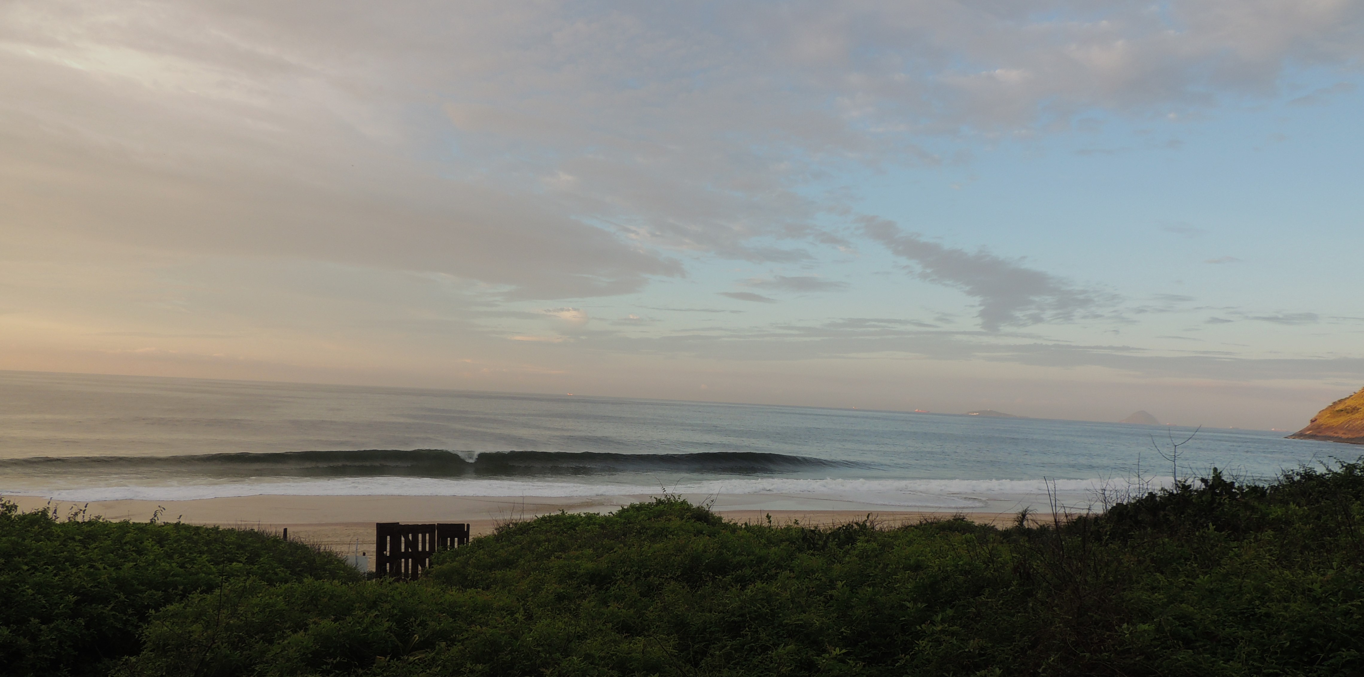 Ondas de 0,5 metro com séries maiores em alguns picos para uma brincadeira pela manhã, sem vento.