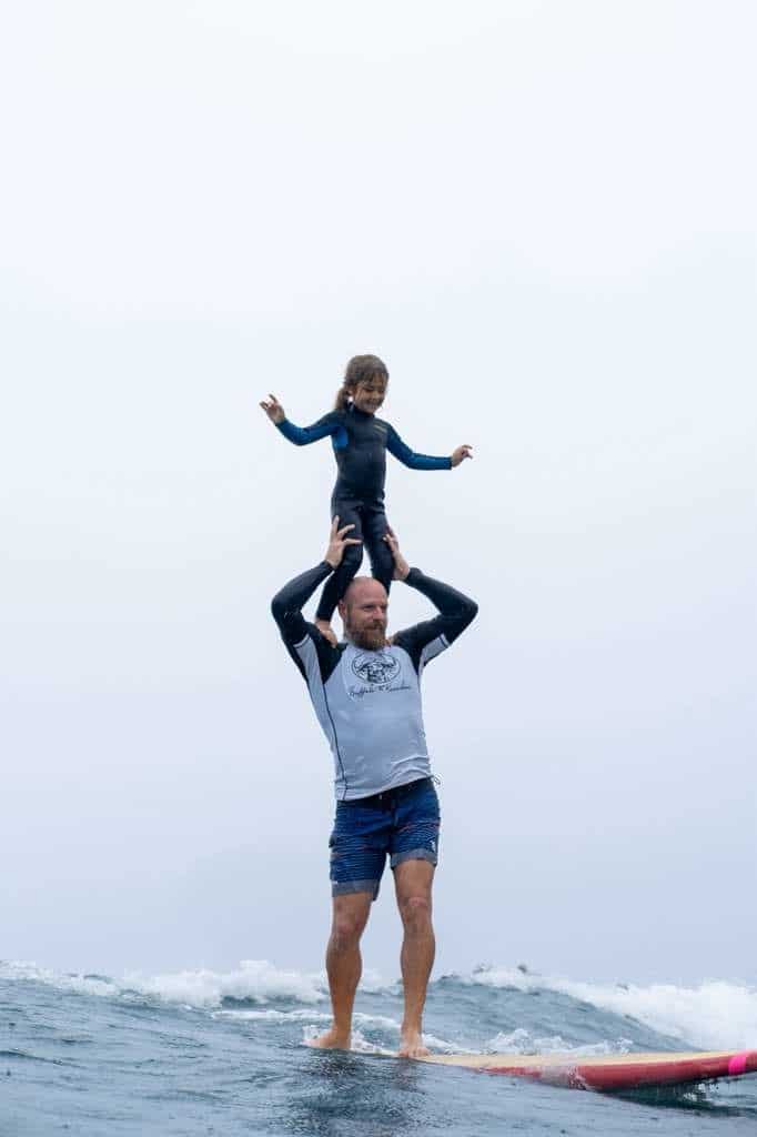 O atleta participou de cinco modalidades na praia de Makaha, entre elas a Tandem com a filha Coral, de 6 anos