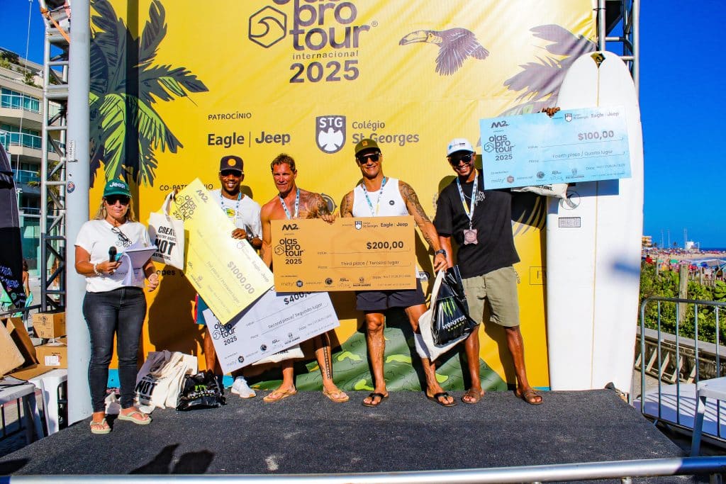 O dia teve boas ondas com cerca de 1 metro na Praia da Macumba. No total, 12 atletas conquistaram títulos e se juntaram aos 4 que venceram na sexta-feira (28) na festa do pódio. Jefson Silva foi o cara nas finais e fechou o evento com vitória na categoria Longboard Profissional Masculina.